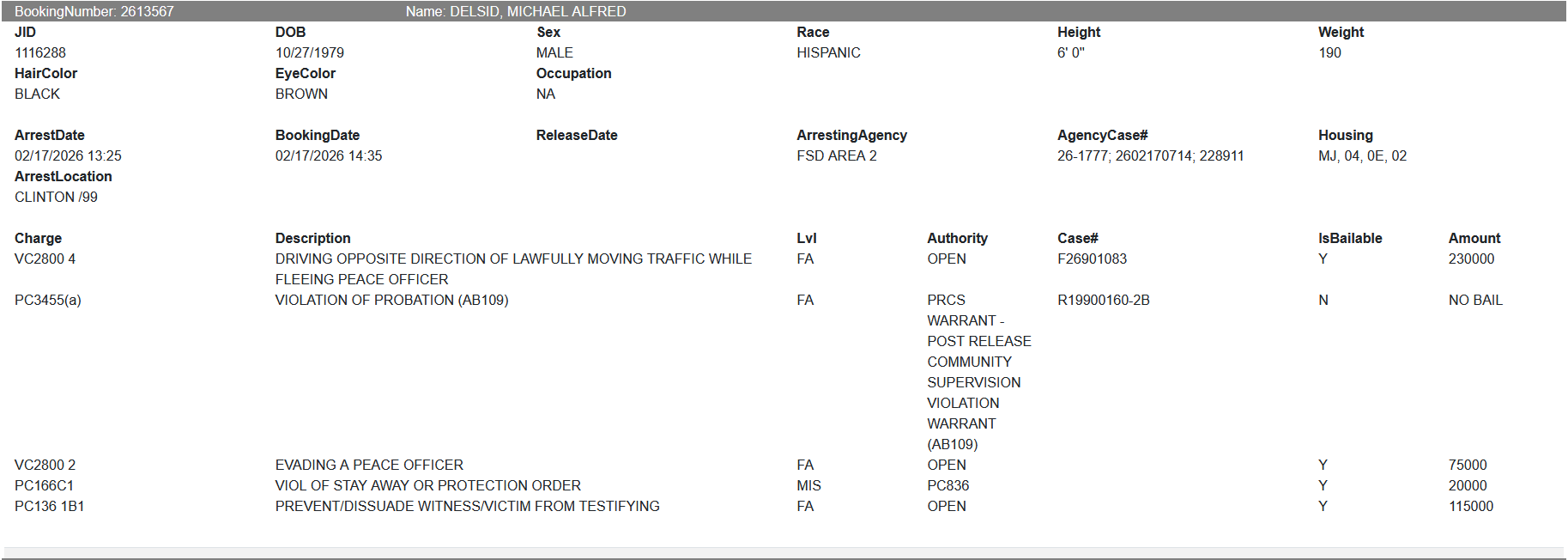 Featured Video Wanted Fresno County felon arrested for the 36th time, deputies say Robert Graham February 19, 2026 https://fresnocrimewatch.com/wp-content/uploads/2026/02/Wanted-Fresno-County-felon-arrested-for-the-36th-time-deputies-s.mp4 Featured Video Post navigation Previous: New bill aims to protect Californians who document federal immigration activityNext: Costa calls out Trump’s claims on immigration following State of the Union Subscribe Login Notify of new follow-up comments new replies to my comments Label {} [+] Name* Email* Website Label {} [+] Name* Email* Website 1 Comment Oldest Newest Most Voted Inline Feedbacks View all comments Author Robert Graham 22 days ago Click here to see this lowlife’s booking information Last edited 22 days ago by Robert Graham Author's Other Posts Suspect arrested in connection to shooting near VA hospital in central Fresno Suspect arrested in connection to shooting near VA hospital in central Fresno March 13, 2026 0 Man arrested in connection to shooting at Amtrak station in Downtown Fresno Man arrested in connection to shooting at Amtrak station in Downtown Fresno March 13, 2026 0 Teen arrested after crashing parents’ vehicle into Northeast Fresno Macy’s Teen arrested after crashing parents’ vehicle into Northeast Fresno Macy’s March 12, 2026 0 Charges filed against woman accused of deadly hit and run crash in Parlier Charges filed against woman accused of deadly hit and run crash in Parlier March 12, 2026 0 Related Stories Featured Video Northeast Fresno Colorado Grill vandalized again, glass door shattered Robert Graham March 9, 2026 1 Murder 41-year-old man stabbed to death by roommate after argument 1 41-year-old man stabbed to death by roommate after argument February 25, 2026 0 2 men arrested in Fresno’s first homicide of 2026 2 2 men arrested in Fresno’s first homicide of 2026 February 4, 2026 0 19-year-old man shot and killed in central Fresno identified 3 19-year-old man shot and killed in central Fresno identified January 27, 2026 0 Man in central Fresno shooting dies from injuries, identified 4 Man in central Fresno shooting dies from injuries, identified January 19, 2026 0